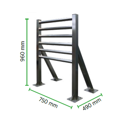 ConstruĂdo em Aço Inox 304 com revestimento em banho de Zinco. Sistema de fixação no solo. Na instalação do batedor, sugerimos que seja mantida uma distância suficiente da área de veĂculos em polimento devido Ă s poeiras geradas pelo batimento dos tapetes que podem alcançar os veĂculos e provocar danos na pintura ou sujidade indesejada.
